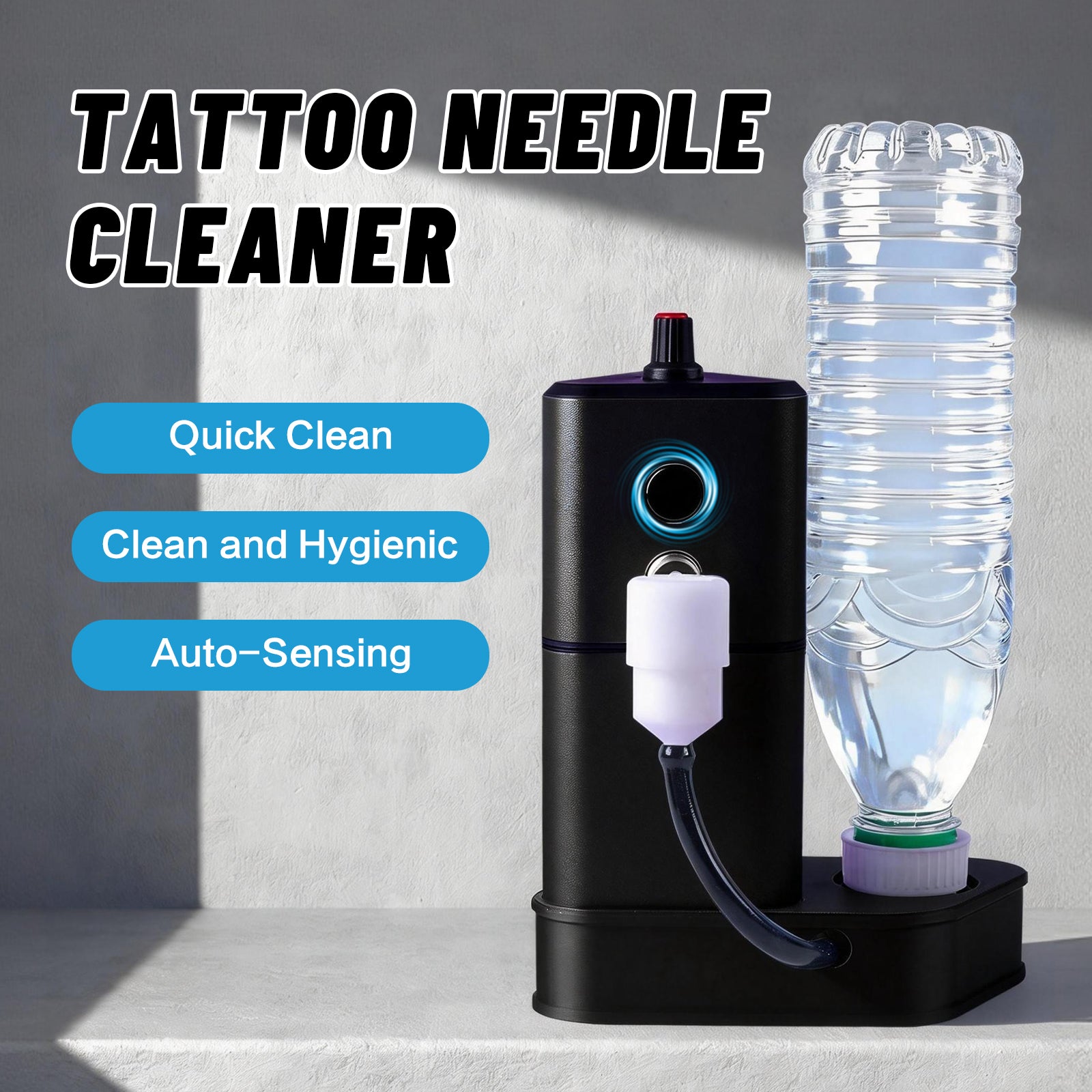 This tattoo needle cleaner features an automatic recognition sensor design, allowing water to flow automatically when the tattoo pen is placed near the washer. No manual switching is required, helping tattoo artists save time and work more efficiently.